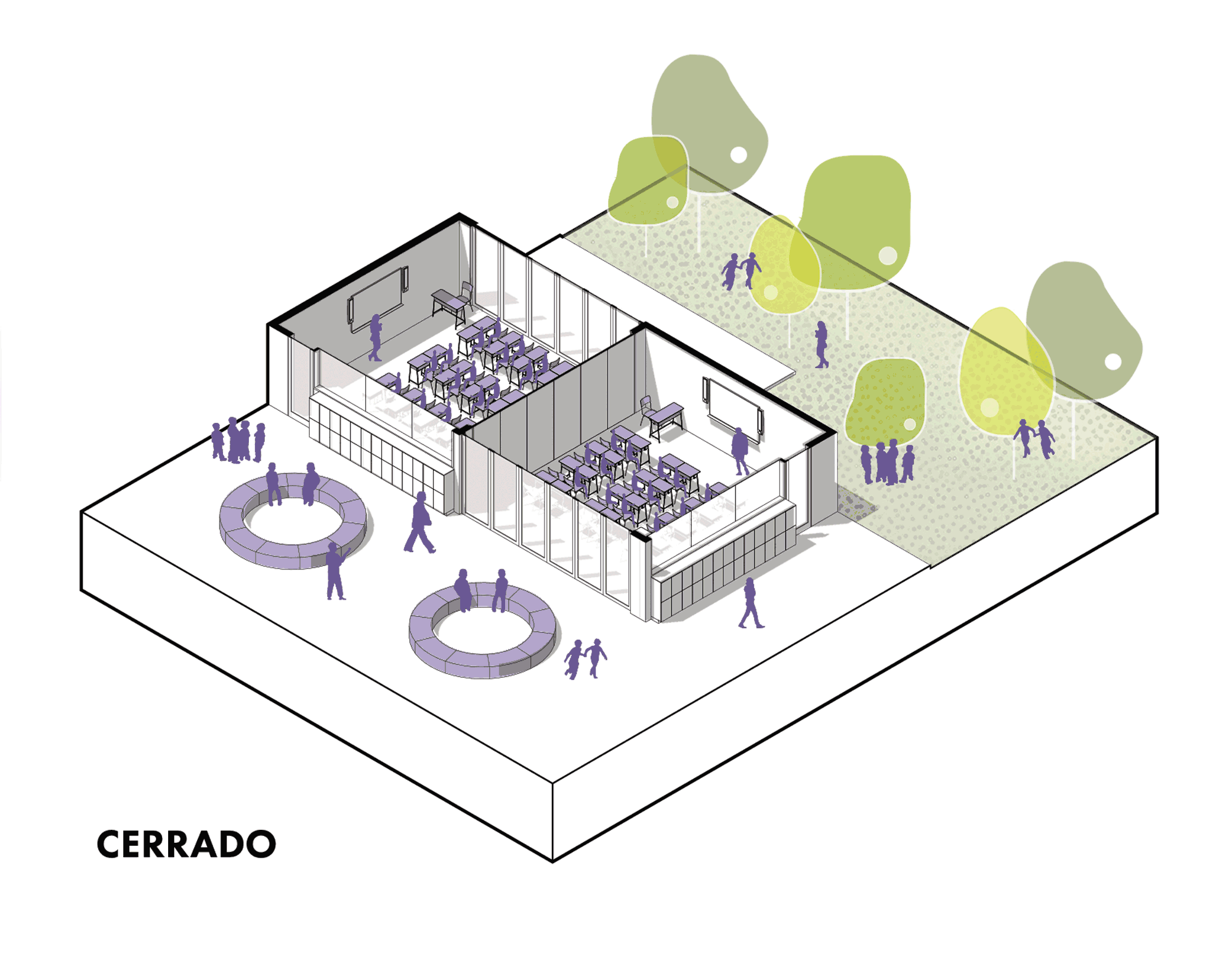 La integración cuidadosa con el paisaje crea espacios para el aprendizaje y la exploración al aire libre en el nuevo campus. El clima templado de Puembo permite que los límites se difuminen entre los espacios interiores y el exterior, fomentando una relación más fuerte entre la visión pedagógica del Colegio, los nuevos espacios proyectados y el entorno natural.