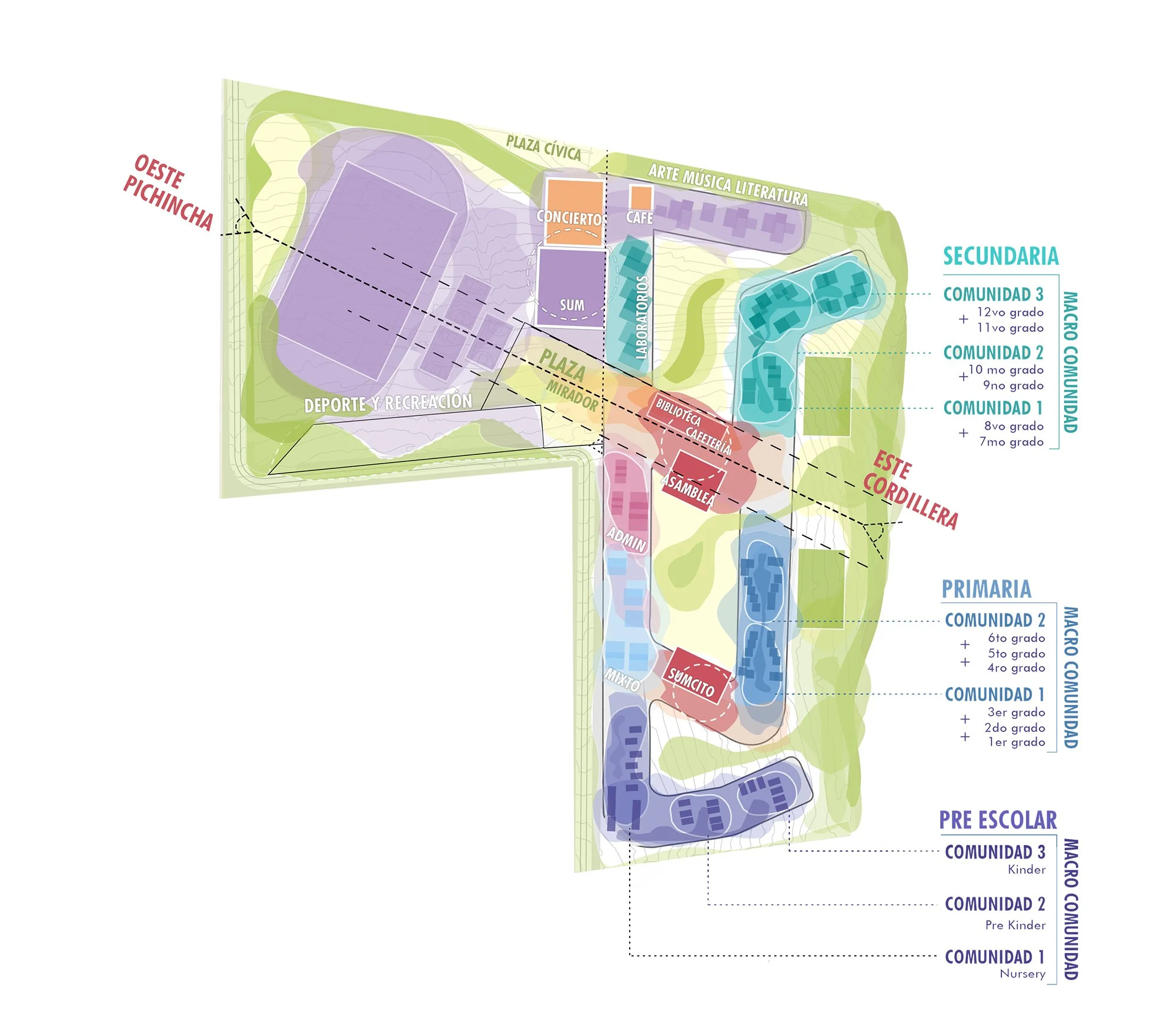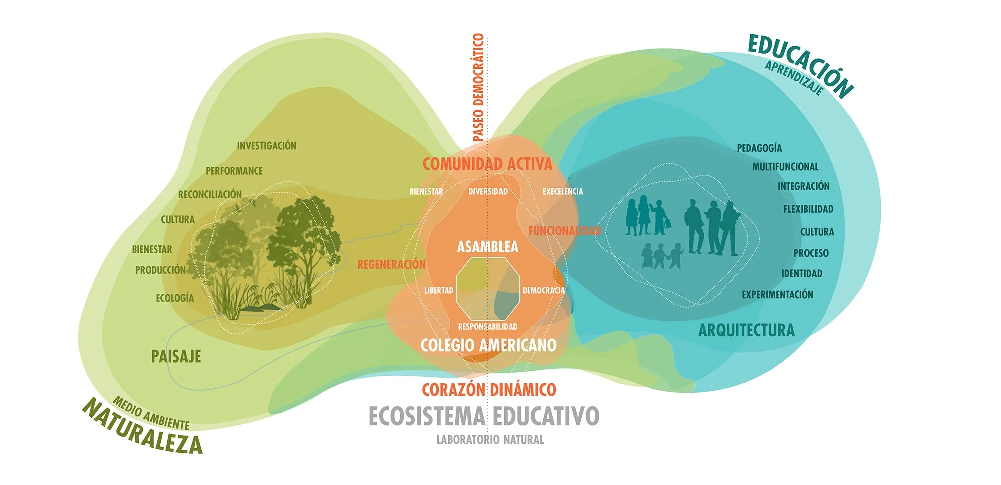 El plan representa una visión de futuro para el nuevo campus del Colegio Americano, donde pedagogía, arquitectura, paisaje y ecología se unen para crear un nuevo paradigma para el aprendizaje en Ecuador, América Latina y más allá.