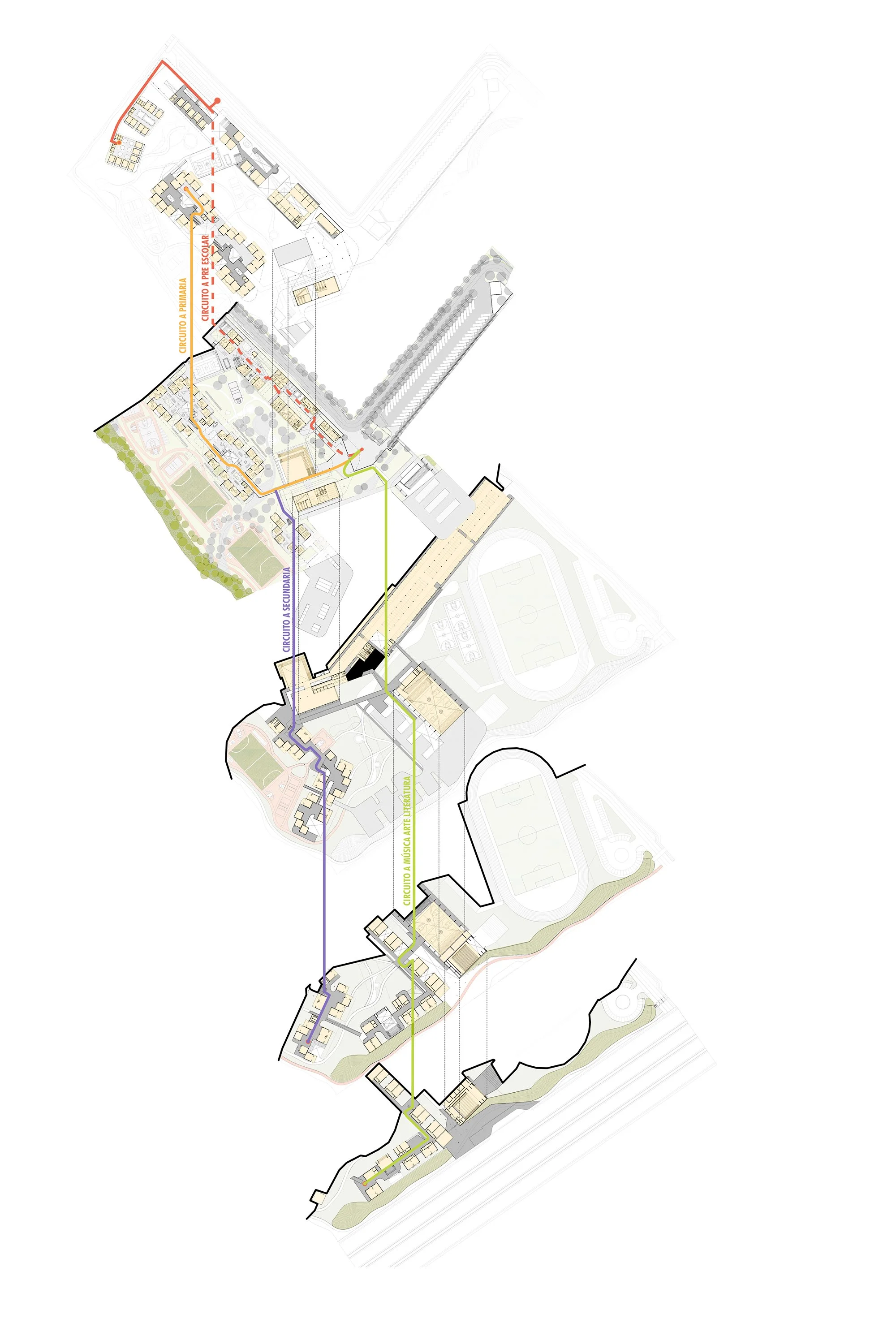 La visión de un laboratorio escolar vivo conjuga arquitectura y paisaje en un entorno de aprendizaje único y un punto de encuentro para la comunidad local. El proyecto se basa en un concepto unificador que tiende un puente entre el complejo escolar, la naturaleza y la comunidad de Puembo en forma de un entorno de aprendizaje diverso, inclusivo y dinámico.