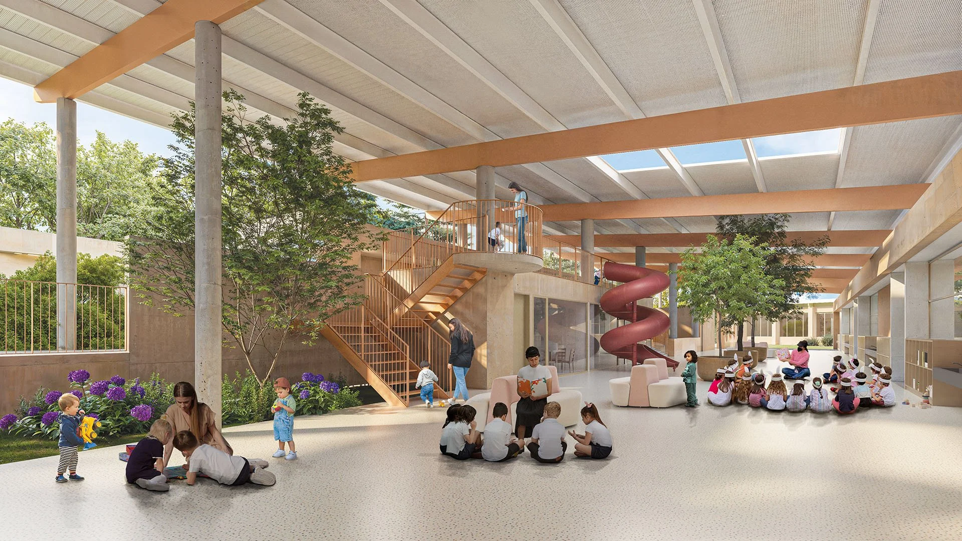 En el corazón del campus, los edificios académicos y los exteriores propuestos fomentan nuevas formas de aprendizaje e interacción estableciendo un nuevo y vibrante centro social e intelectual para todo el Colegio. Están unificados por una estructura de espacio público interconectada, la Asamblea.